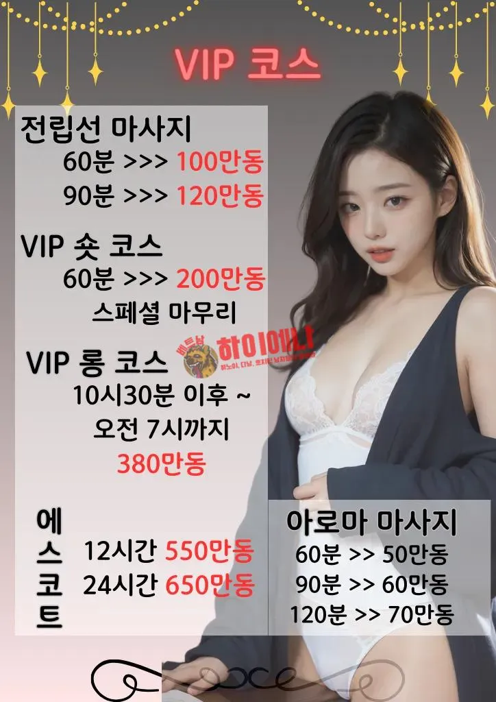 VIP, 붐붐: 성관계 / HJ: 손 / BJ: 입 / 누루: 오일 밀착