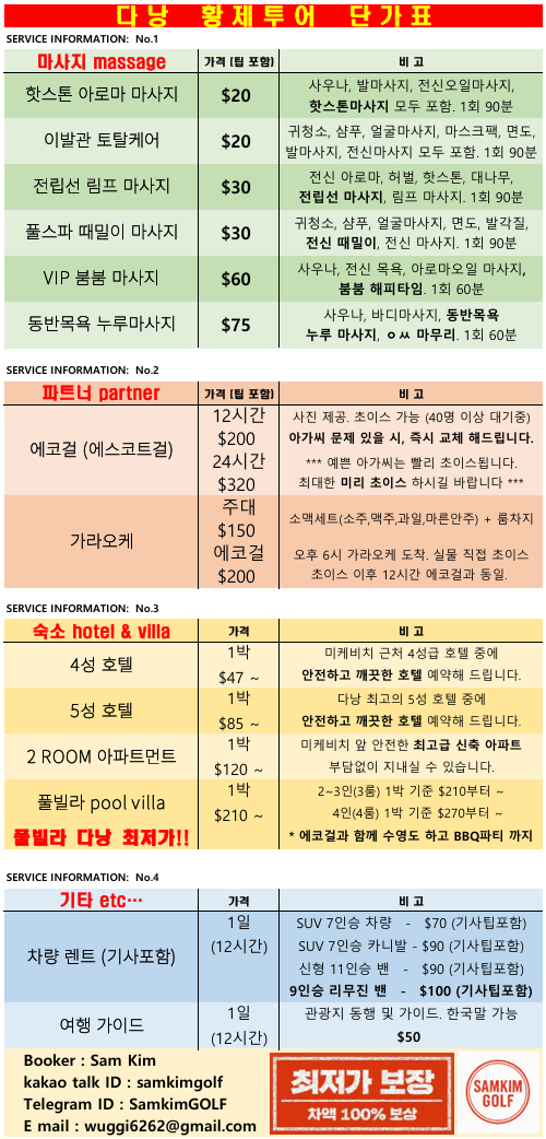 다낭 VIP투어 다낭 골프투어 프라이빗 차량 한국어 컨시어지