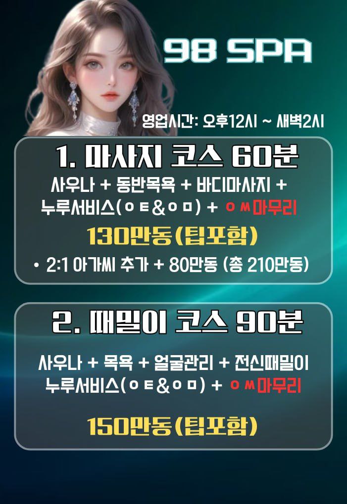 베트남하이에나 2025.10.08 18:25 업종남성전용서비스마사지,HJ,BJ,누루영업시간12:00~02:00영업중전화번호정보 없음지역하노이/남뜨리엠구글지도보기 문의하기 텔레그램 카카오톡 A. 코스(마사지) 팁포함사우나, 동반목욕, 바디마사지, 누루, 입싸 - 60분130만동B. 코스(때밀이) 팁포함사우나, 목욕, 얼굴관리, 전신때밀이, 누루, 입싸 - 90분150만동 하노이 98 Spa 에서 지금 까지 경험 해 보지 못한 경험을 해보시길 바랍니다.^^ 위치 Google 리뷰 목록